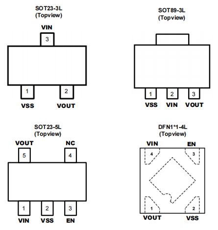 擇。封裝形式具有SOT23-3L、SOT23-5L、SOT-89和 DFN1*1-4L可供選擇。